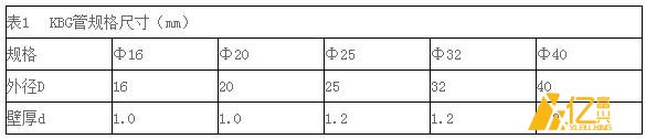 表1 KBG管規(guī)格尺寸(mm)